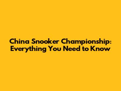 China Snooker Championship: Everything You Need To Know