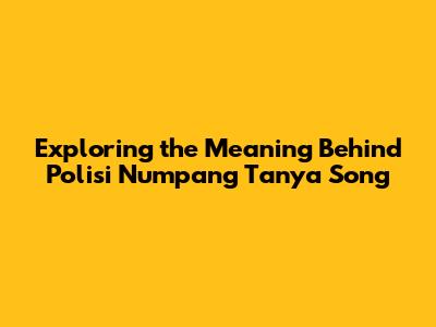 Hey guys! Ever heard that catchy tune, "Polisi Numpang Tanya"? It's a song that's been making waves, and for good reason! It's got a super memorable melody, but more than that, it dives into some pretty interesting themes. This article is all about exploring the layers of meaning behind "Polisi Numpang Tanya" song, breaking down the lyrics, and checking out what people are saying about it. Let's get this investigation started and uncover the message it's sending!