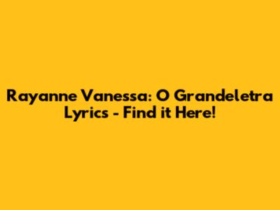 Hey guys! Today, let's dive into the soulful world of gospel music with a special focus on the amazing Rayanne Vanessa and her inspiring song, "O Grandeletra." If you're searching for the lyrics to this powerful track, you've come to the right place. We'll explore the song's meaning, Rayanne Vanessa's impact, and why this song resonates with so many people. So, grab your headphones, get comfy, and let's get started!
