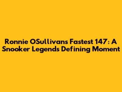 In conclusion, Ronnie O'Sullivan's fastest 147 is more than just a record; it's a symbol of snooker brilliance, a testament to human potential, and an enduring legacy that will continue to inspire generations of players and fans alike. It's a moment that encapsulates the essence of the sport – the skill, the strategy, the mental fortitude, and the occasional dash of luck – all combined to create a spectacle of unparalleled beauty and excitement. O'Sullivan's achievement has rightfully earned him a place among the pantheon of sporting legends, and his name will forever be synonymous with the fastest, most breathtaking maximum break in snooker history. He is also a very popular player and he has many fans all over the world. He is a great ambassador for the sport and he is always willing to help young players. Ronnie has given a lot back to the sport over the years and he deserves all the accolades that he has received. He is a true legend of the game and he will always be remembered as one of the greatest players of all time. The 147 break in 5 minutes and 8 seconds will never be forgotten.