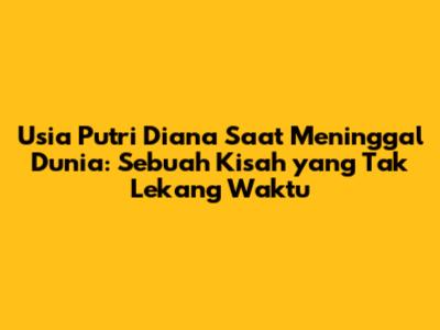 Semoga artikel ini memberikan wawasan mendalam tentang usia Putri Diana saat meninggal dunia, serta mengenang perjalanan hidupnya yang luar biasa. Kisahnya akan terus menjadi inspirasi bagi kita semua untuk berbuat baik dan membuat dunia menjadi tempat yang lebih baik.